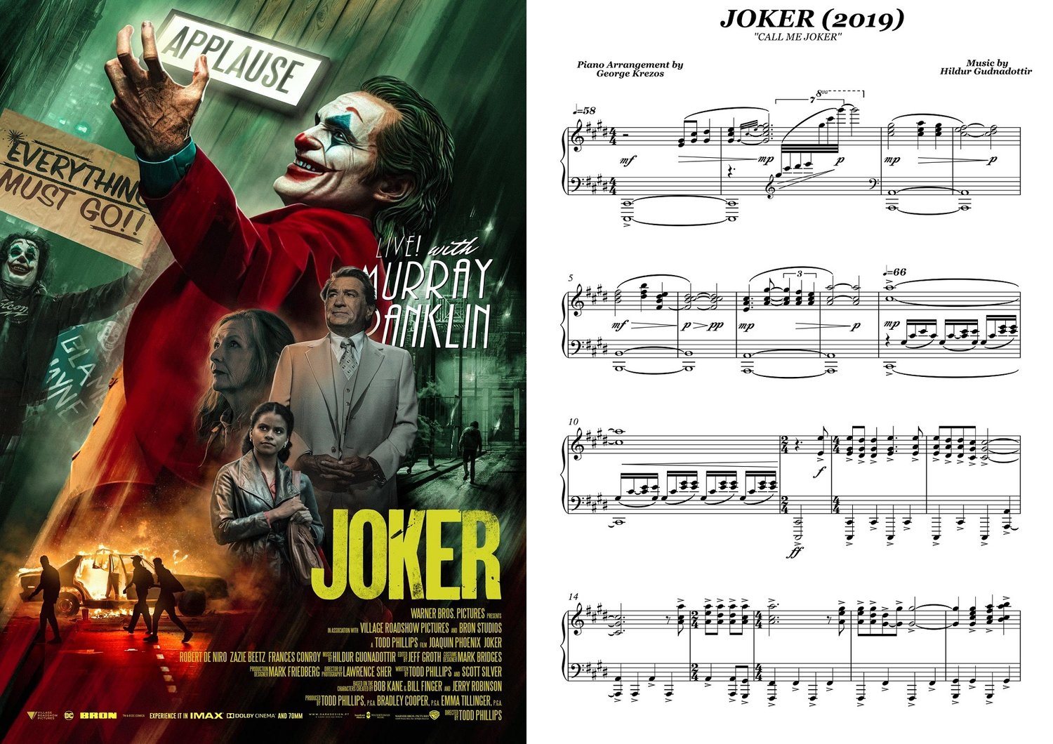 Piano sheet music for ''Call me Joker'' from the movie JOKER (2019). Music by Hildur Gudnadottir.