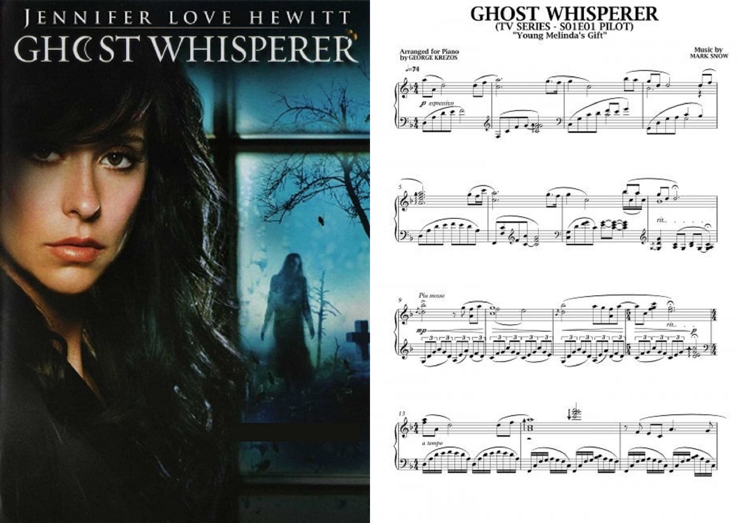 Piano sheet music for ''Young Melinda's Gift'' S01 E01 from CBC Supernatural / Drama Series GHOST WHISPERER (2005-2010). Music by Mark Snow.