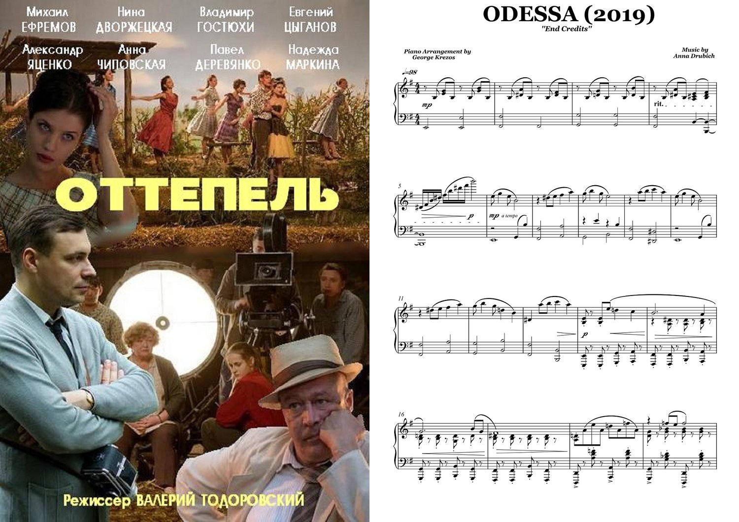 Piano sheet music for ''End Credits'' from Comedy / Drama Russian film ODESSA (2019). Music by Anna Drubich.