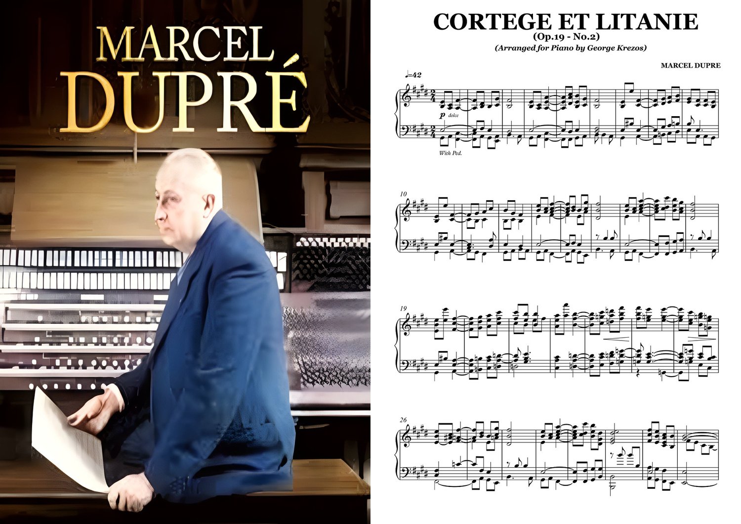 Piano Sheet music for ''Cortege et Litanie Op.19 No.2''. Music by Marcel Dupre. Piano arrangement by George Krezos. The level of difficulty is intermediate to advanced. Complete 6 page PDF file available for download upon purchase.