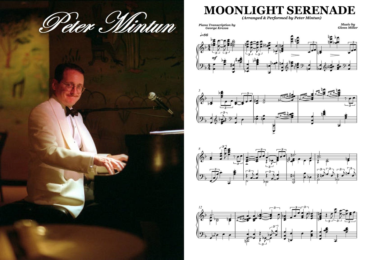 Piano sheet music for ''Moonlight Serenade'' as arranged & performed by Peter Mintun. Music by Glenn Miller.