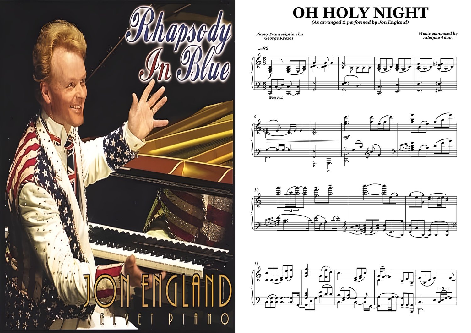 Piano sheet music for ''Oh Holy Night'' as arranged & performed by Jon England the ''Velvet Pianist''. Music by Adolphe Adam.