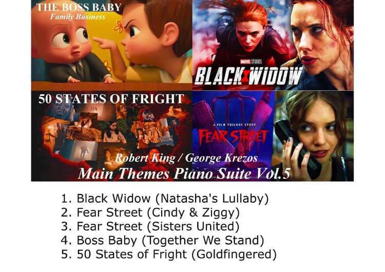 This Piano Suite contains 3 main themes from famous movie soundtracks composed by Armand Amar / Paul Leonard-Morgan / Alberto Iglesias. Arranged by George Krezos.