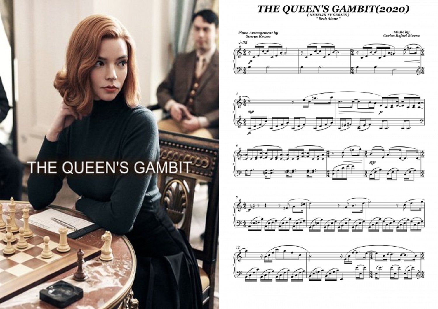 THE QUEEN'S GAMBIT (NETFLIX SERIES 2020) Beth Alone - Carlos Rafael Rivera (Piano Sheet Music))