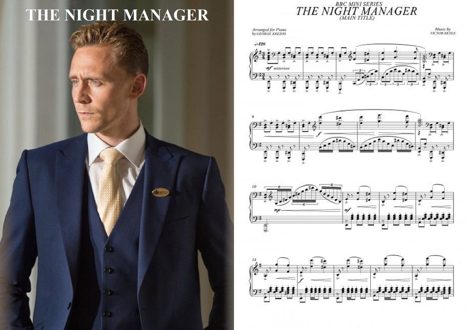 Piano sheet music for ''Main Title'' from BBC Mini Series THE NIGHT MANAGER (2016). Music by Victor Reyes.
