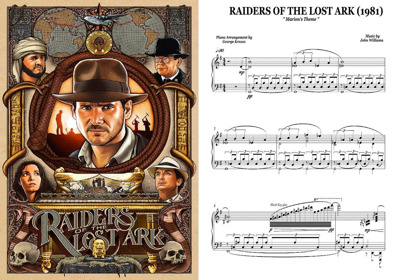 Piano sheet music for ''Marion's Theme'' from the film RAIDERS OF THE LOST ARK (1981).Music composed by John Williams.