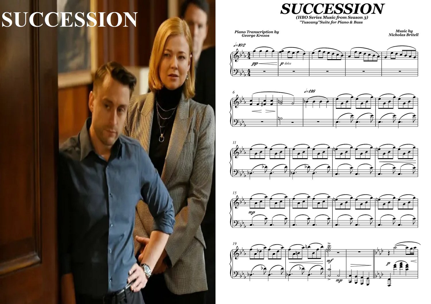 SUCCESSION (Music from Season 3) - ''Tuscany'' Suite for Piano & Bass - Nicholas Britell (Piano Sheet Music)