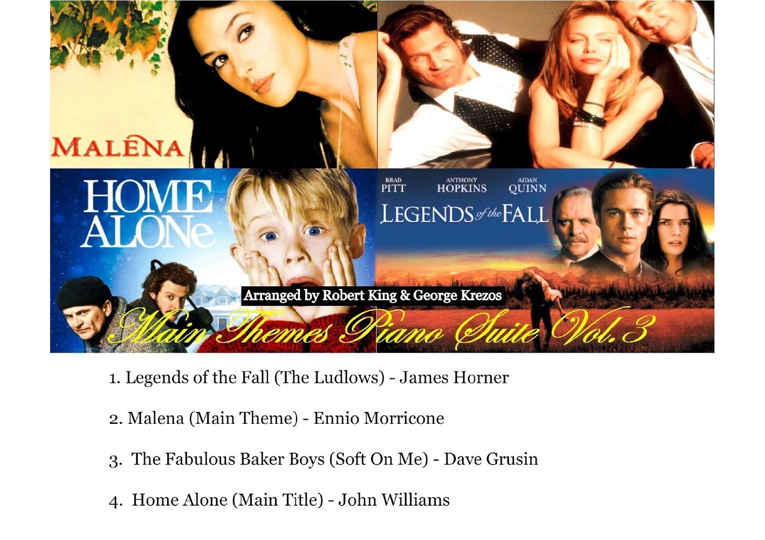 This Piano Suite contains 4 main themes from famous movie soundtracks composed by James Horner / Ennio Morricone / Dave Grusin / John Williams. Arranged by George Krezos & Robert King.