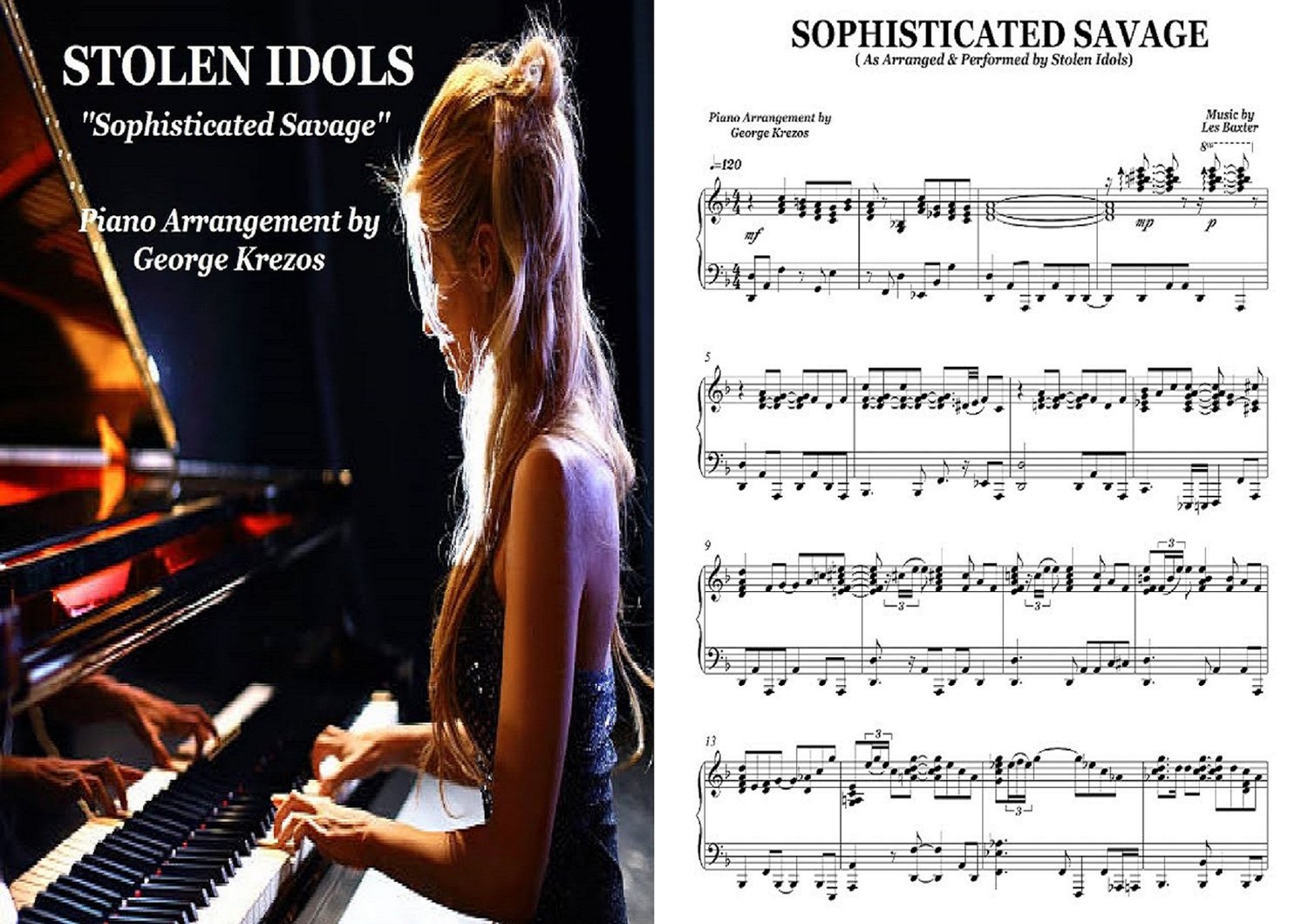 Piano sheet music for ''Sophisticated Savage'' as arranged & performed by Stolen Idols. Music by Les Baxter.