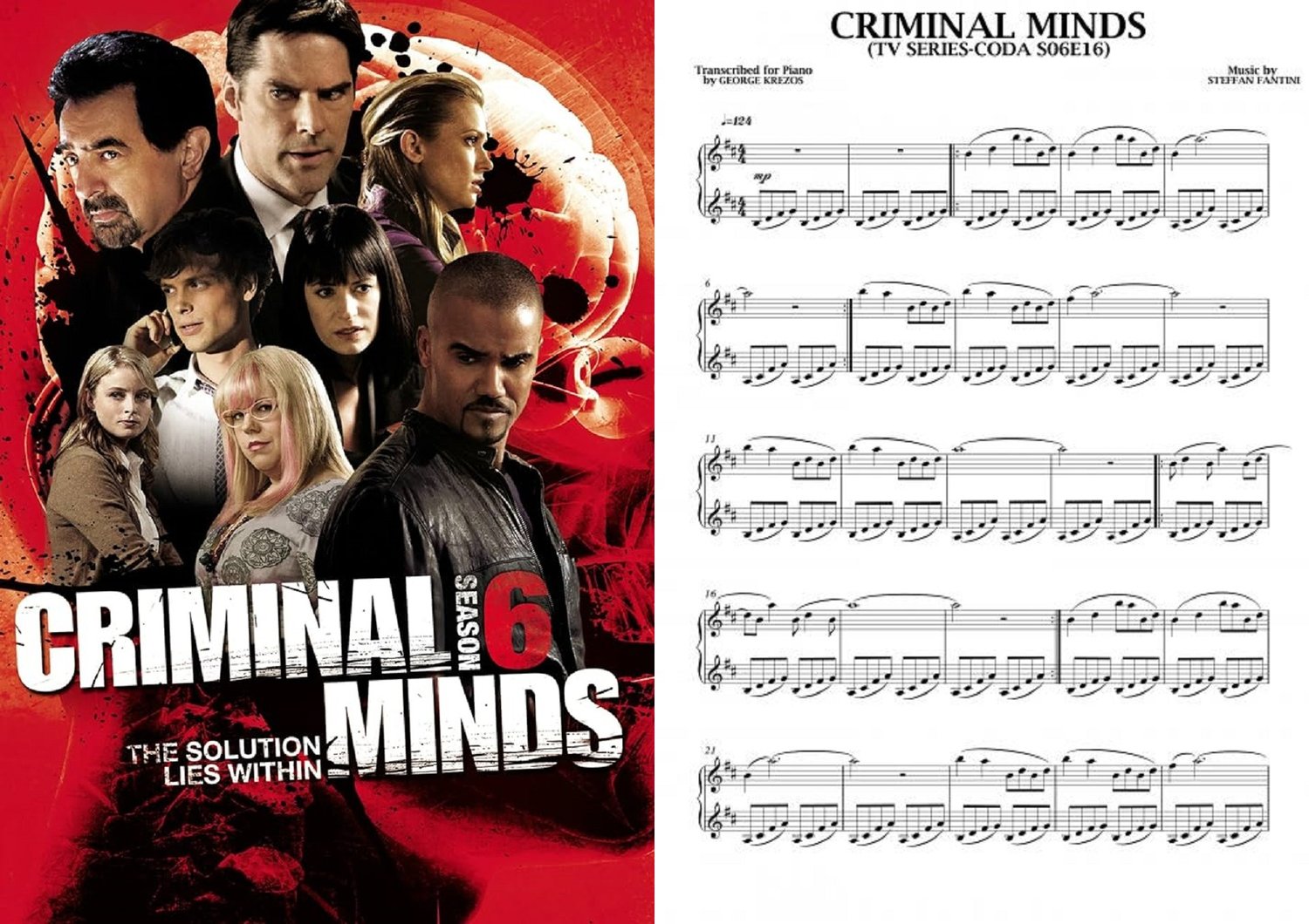 Piano sheet music for ''Coda'' from CBS TV Series CRIMINAL MINDS Season 6 Ep.16.