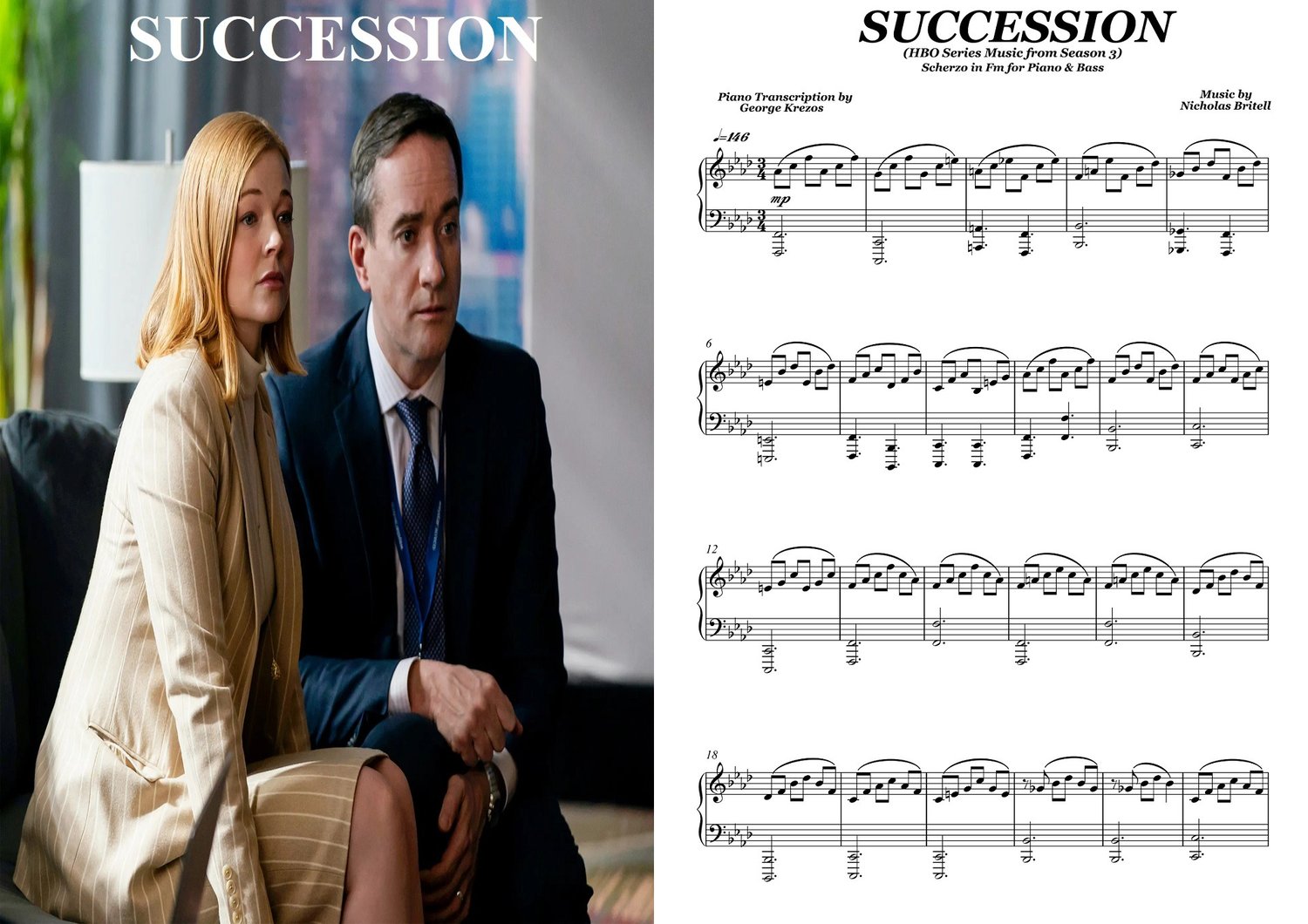 SUCCESSION (Music from Season 3) Scherzo in Fm for Piano & Bass - Nicholas Britell (Piano Sheet Music)