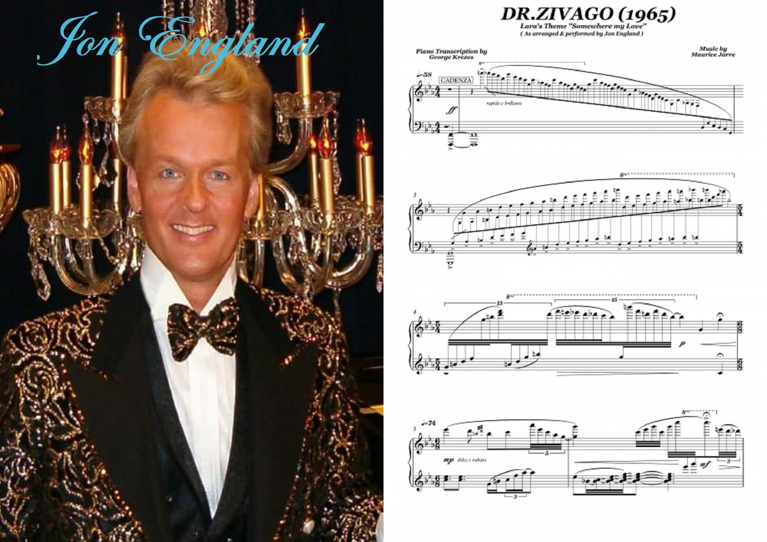 Piano sheet music for ''Lara's Theme'' theme from DR.ZIVAGO (1965) as arranged & performed by Jon England the ''Velvet Pianist''.Music by Maurice Jarre.