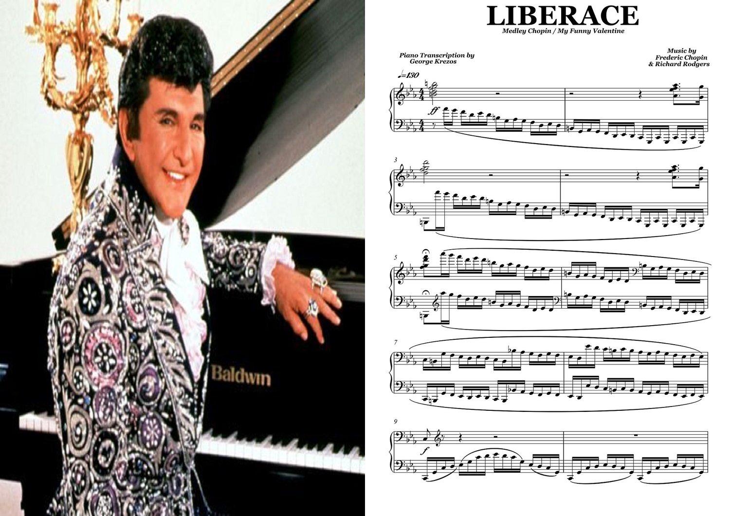 Piano sheet music for Medley Chopin & My Funny Valentine as arranged & performed by Liberace.Music by Frederic Chopin & Richard Rodgers.