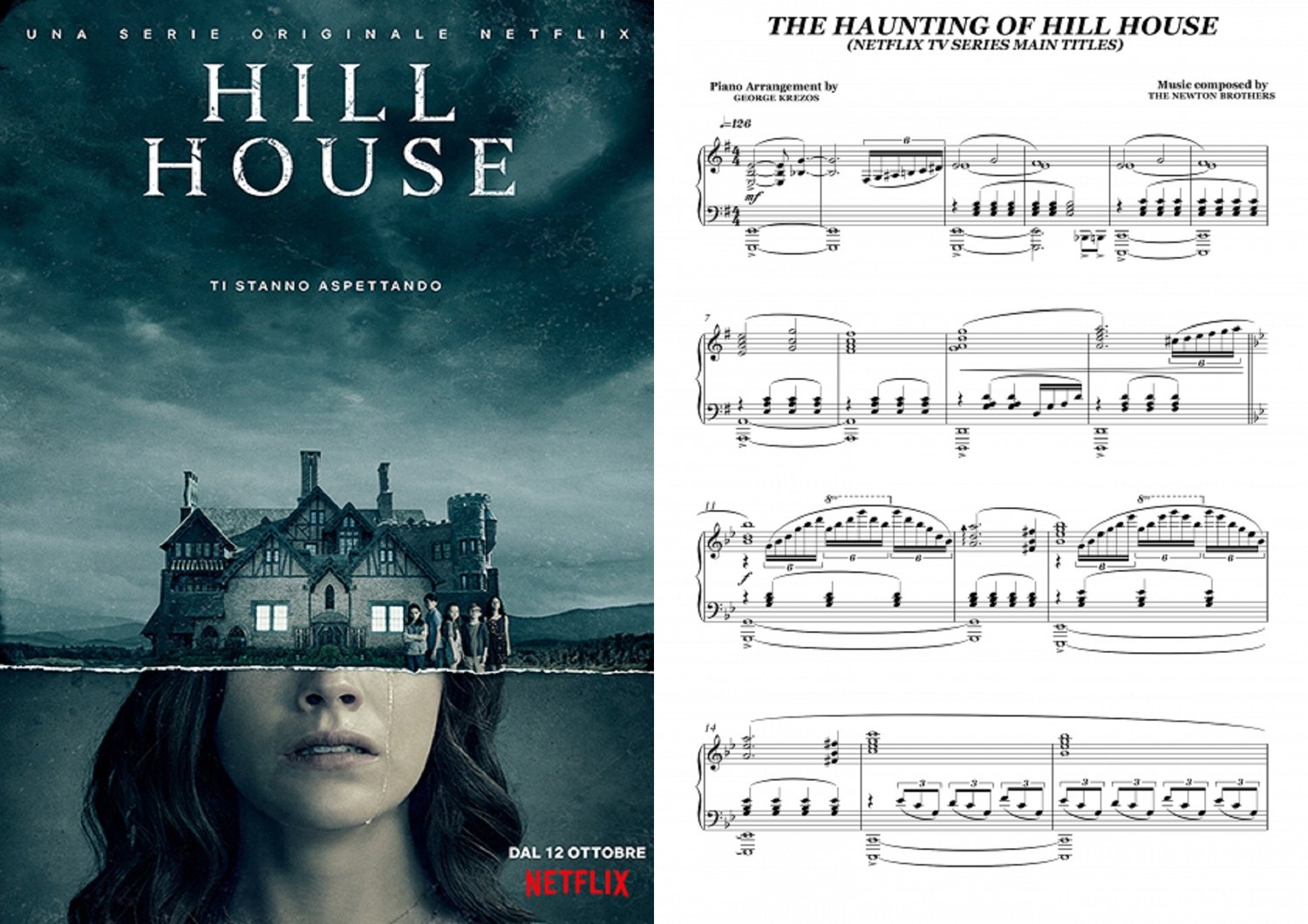 Piano sheet music for ''Main Titles'' from Netflix Horror Series THE HAUNTING OF HILL HOUSE (2018). Music by The Newton Brothers.