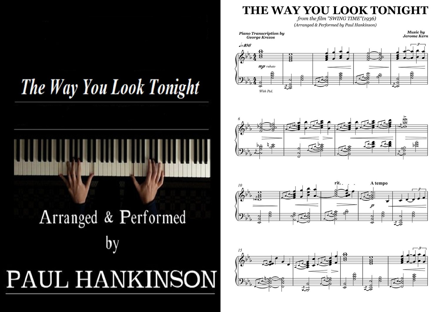 Piano sheet music for ''The Way You Look Tonight'' from the film SWING TIME (1936) as arranged & performed by Paul Hankinson.Music by Jerome Kern.