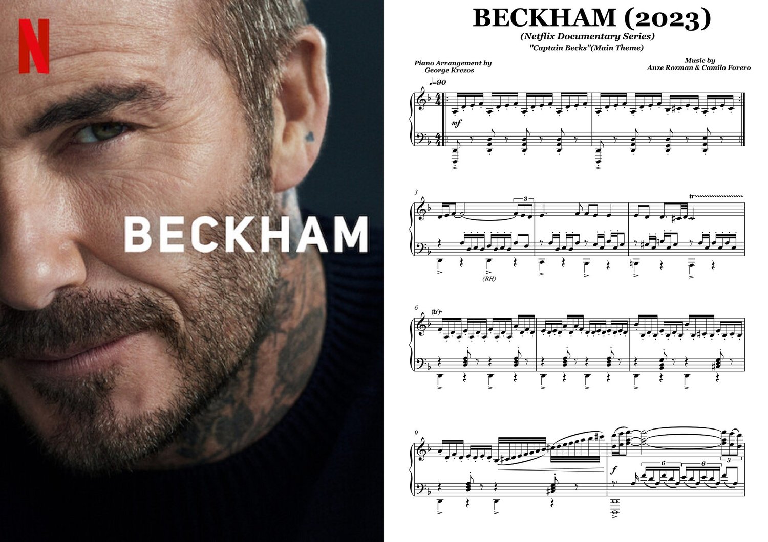 BECKHAM (2023 Netflix Documentary Series) Captain Becks (Main Theme) - Anze Rozman & Camilo Forero (Piano Sheet Music)